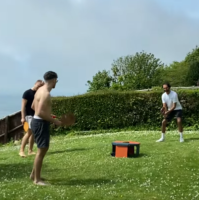 During a trip to the Lake District, we pitched up for an afternoon and looked for something to do. With just four padel rackets and a ball, it didn’t take long before we were running rings around a tree stump, and so the game was born.